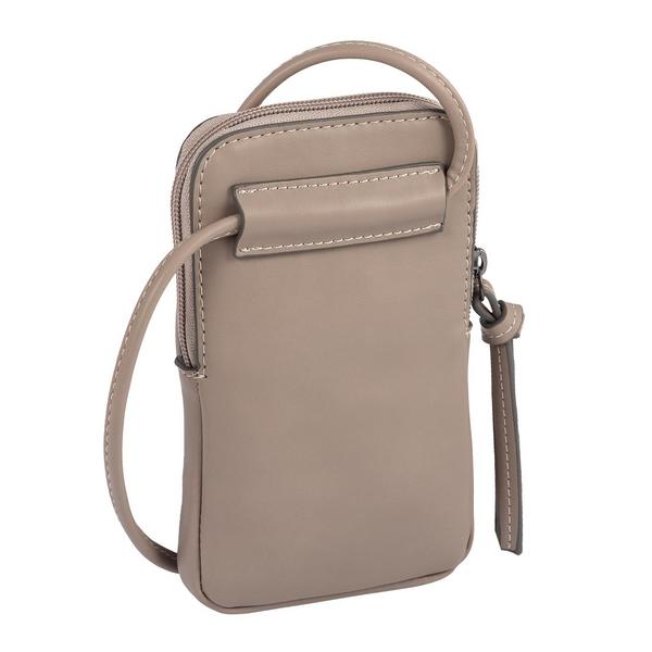 Nicht mehr wegzudenken aus unserem Alltag: Das Handy. Stylish gewandet in hochwertigem Lederimitat mit filigraner Silberfolien-Prägung und feinen Ziernähten trägt man das Gerät gerne zur Schau. Handytasche mit Reißverschlussöffnung, 3 Kartensteckfächer, 1 langer verstellbarer Schulterriemen. Maße in cm: 11x2x18