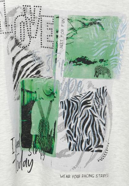 We love Prints! Feminines Langarmshirt von CECIL mit Rundhalsausschnitt. Der Fotodruck zeigt sich im angesagten Animal-Print, der mit Deko-Steinchen noch zusätzlich zum Glänzen gebracht wird. Der Tunnelzugband am Saum ist ein sportliches Detail. Die Melange-Optik gibt dem soften Materialmix eine moderne Note.