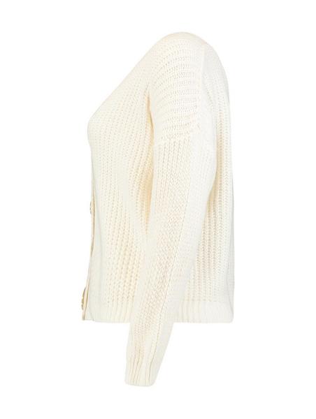 Strickjacke mit V-Auschnitt und langen Ärmeln. Knopfleiste und Ripp-Bündchen.