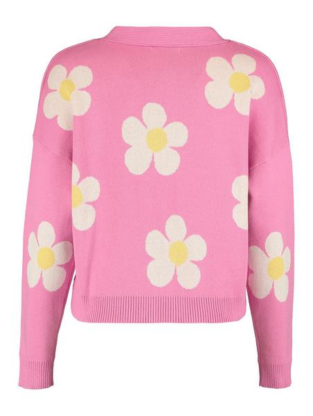 Kurzer Strickcardigan mit all over Muster und Knöpfen in der vorderen Mitte.