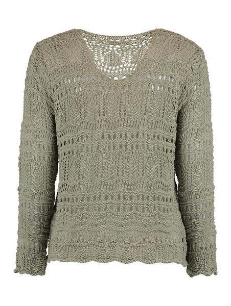 Langärmeliger Strickpullover mit aufwendigem Strickmuster und V-Neck