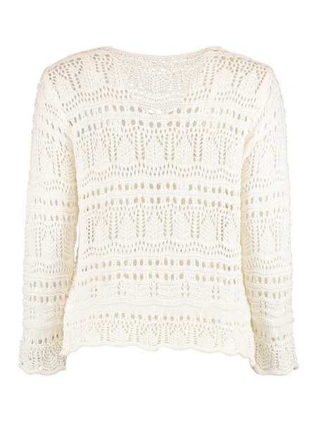 Langärmeliger Strickpullover mit aufwendigem Strickmuster und V-Neck