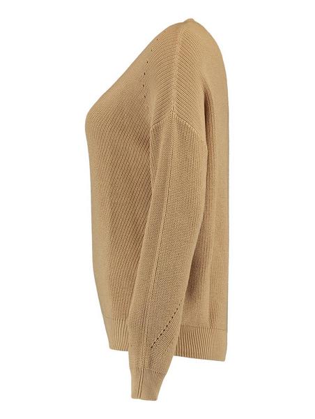Locker sitzender Strickpullover mit V-Ausschnitt und Strickdetails im Vorderteil und an den Ärmeln.