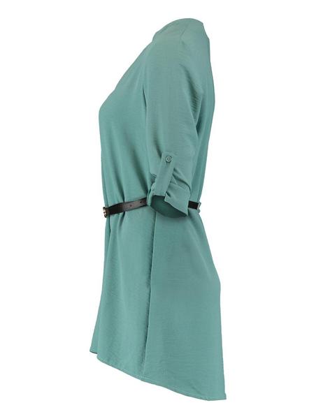 Long Bluse mit V-Ausschnitt, taillengürtel und roll-up-Ärmeln.