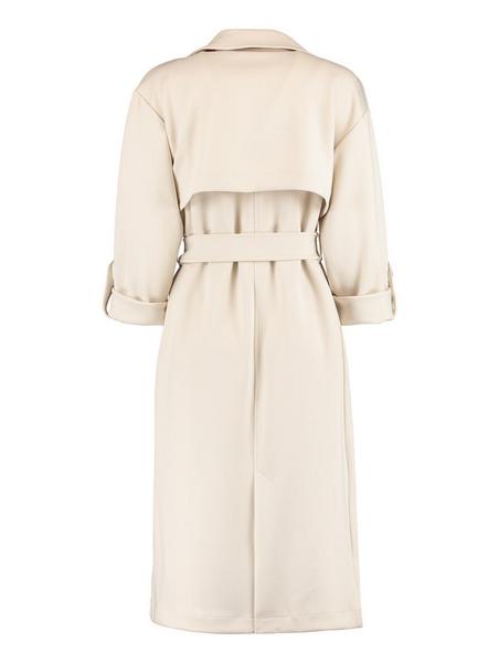 Locker sitzender Mantel aus Polyester mit zweireiher Knopfleiste und Gürtel zum Taillieren.