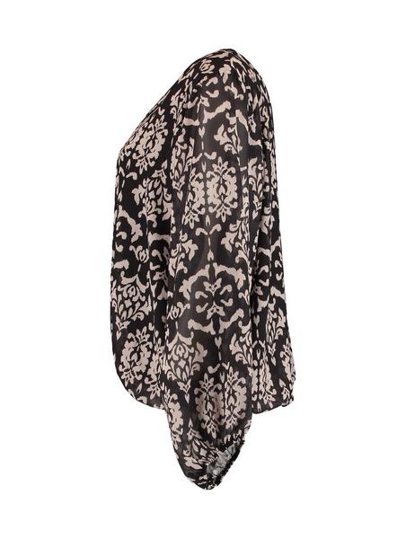 langarm Blusentop kurz, V-Ausschnitt, allover print