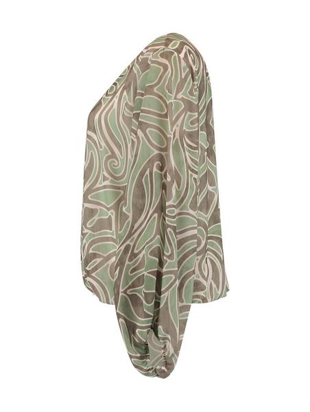 langarm Blusentop kurz, V-Ausschnitt, allover print