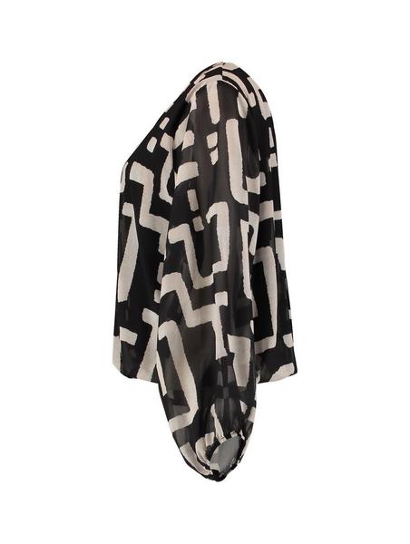 langarm Blusentop kurz, V-Ausschnitt, allover print