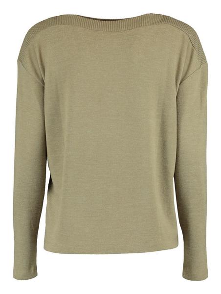 Locker sitzendes Shirt mit U-Boot Ausschnitt und Strickdetails an der Schulternaht.