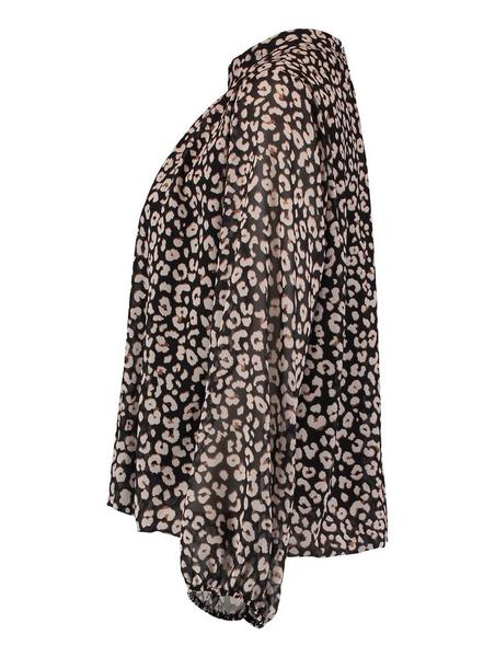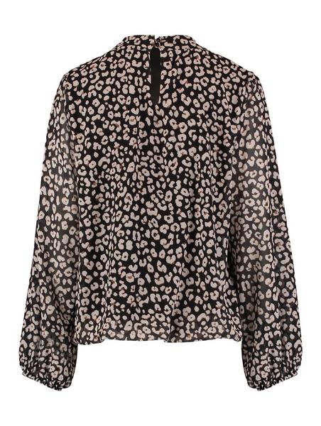langarm Top mit hohem Kragen, hinten mit Knopf zum Schließen, allover print, elastische Bündchen