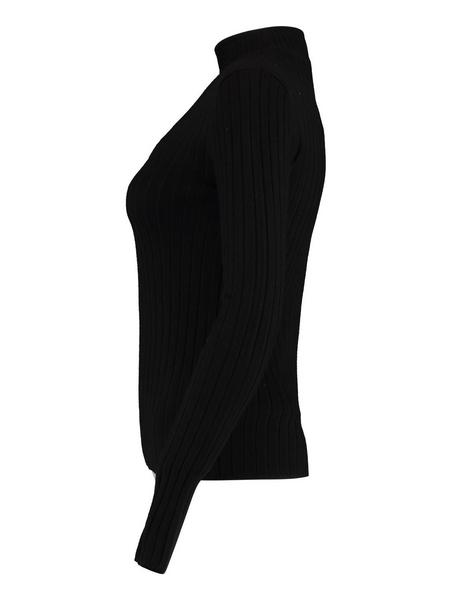 Leicht elastischer Feinstrickpullover mit Stehkragen, einem geraden Saum und einer abgesteppten Kante. Weicher Griff