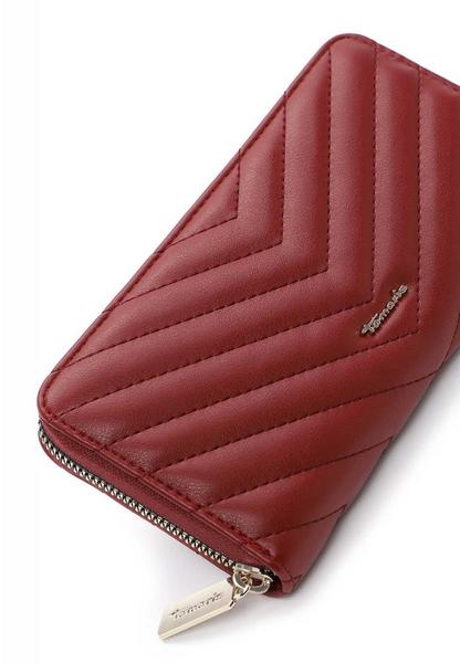 Für jeden Lebensstil das passende Accessoire Jederzeit sympathisch und attraktiv im Getümmel. Mit Madlin - der schicken Geldbörse in Uni-Design mit Reißverschluss-Münzfach - sind Karten und Bargeld mit Stil und Klasse verwahrt. Das Modell besteht aus Feinsynthetik und lässt sich mit einem Reißverschluss verschließen. Mit ihrer Stepp-Optik und dem Uni-Design ist die hochwertige Geldbörse ein echter Hingucker. Ob chic oder trendy, klassisch oder modern: Tamaris hat für jeden Style die große Auswahl an tollen Accessoires. Die Geldbörse hat ein übersichtliches Hauptfach. Ein eher festes Material sorgt bei Madlin dafür, dass Dokumente o.ä. keine Knicke bekommen. Ein Emblem schmückt optisch und hebt das ausgefallene Design dieses neuen Favoriten hervor. Perfekt für den Abend mit der Clique oder eine aufregende Party. In die kleine Geldbörse passen Portemonnaie, Handy und ein Lippenstift - also alles, was eine Frau beim Ausgehen dabei haben muss. Ein Reißverschluss-Münzfach, 8 Kreditkartenfächer und Scheinfächer zeichnen dieses Portemonnaie aus.