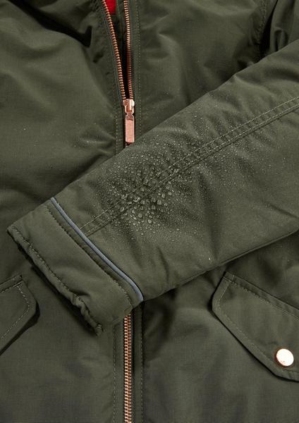 wasserabweisend, atmungsaktiv und winddicht, cooler Look in seidig-matter Optik, fixierte, gefütterte Kapuze mit abnehmbarem Fake Fur-Panel, durchgehender Metall-Reißverschluss mit Kinnschutz, Taille mit Tunnelzug und Durchzugkordel; Weitenregulierung innen, zwei Pattentaschen vorn, bequeme, leicht verlängerte Parka-Passform; Rückenlänge bei Größe M ca. 73 cm, hochwertige, warm wattierte Textil-Qualität mit kuscheligem Teddyfutter für kalte Temperaturen
