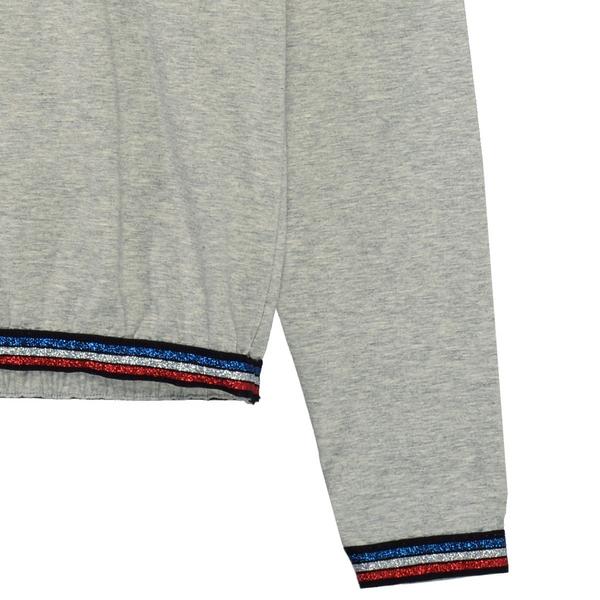 unifarbenes Design glitzernde, elastische Bündchen überschnittene Schultern verkürzter Schnitt