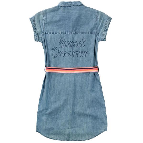 Dieses süße Jeanskleid von STACCATO ist ein Must-Have für den Sommer! Ein bunter Gürtel an der Taille und ein Wording-Print auf der Rückseite machen das Design perfekt. 100% Baumwolle verwaschenes Denim-Design durchgehende Knopfleiste zwei Brusttaschen Print auf der Rückseite