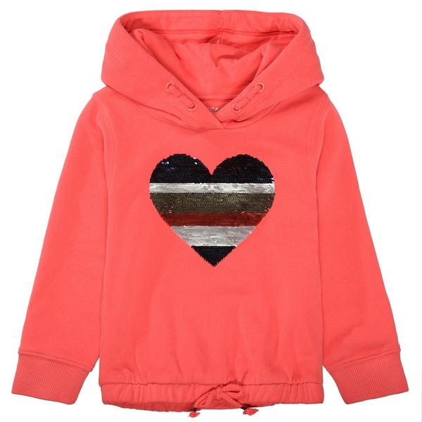 Mit diesem niedlichen Sweatshirt von STACCATO ist Ihr Mini-Girl im Handumdrehen perfekt gestylt! Das coole Wendepailletten-Motiv und die softe Haptik machen dieses Sweatshirt zum absoluten Allrounder. hochwertiger Baumwollmix Herz-Applikation aus Wendepailletten unifarbenes Design Kapuze mit angedeutetem Tunnelzug Gummizug an Saum mit Zierschleife