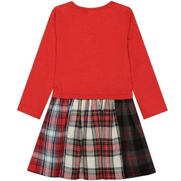 Ein karierter Weihnachtstraum! Dieses Kleid ist perfekt für festliche Anlässe aber auch für Freizeittage besonders zur Weihnachtszeit. elastischer Baumwollmix Rundhalsausschnitt karierter Rock unifarbendes Oberteil mit Paillettenaufnäher