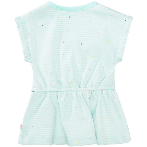 Ein Kleid, dass Ihre Kleine im Handumdrehen verzaubern wird! Es präsentiert sich im süßen Streifen-Design. Die dezenten Neon-Elemente, die sich im Patch und der Schleife wieder finden, stellen sich als besondere Highlights heraus. Die reine Biobaumwollqualität liegt dabei angenehm auf der Haut und ist somit perfekt für die zarte Babyhaut. Details: umgeschlagene Ärmel, elastischer Gummibund an der Taille, Druckknöpfe erleichtern das An- und Ausziehen.
