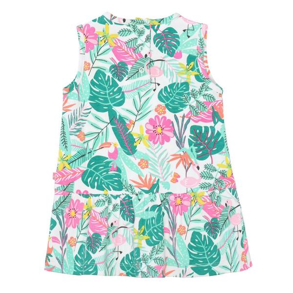 Dieses Kleid wird Ihr Baby-Girl lieben! Der bunte Print im Dschungel-Design und das geraffte Unterteil machen das Kleid schnell zum neuen Lieblingsteil. weicher Baumwollmix mit Stretch-Anteil Allover-Dschungel-Print gerafftes Unterteil Label-Annäher an der Seitennaht schließt mit Druckknöpfen auf der Rückseite