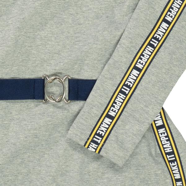 elastischer Baumwollmix Rundhalsausschnitt dekorativer und taillierender Gürtel Seitenstreifen mit Wording-Print