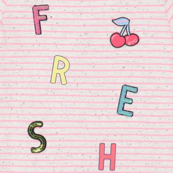 Für alle süßen Mädels! Dieses Streifenshirt von STACCATO überzeugt mit niedlichem Design und höchstem Komfort. stretchiger Baumwollmix Streifen-Design buntes Neppy-Design bunte Applikationen mit Pailletten verlängerte Rückseite In verschiedenen Farben erhältlich.