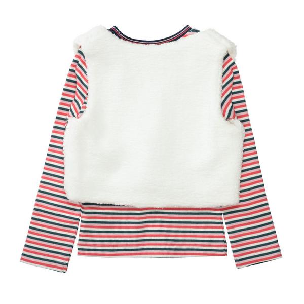 Dieses wunderbare Set aus Langarmshirt und Weste wird Ihr Mini-Girl lieben! Das Ringel-Design harmoniert wunderbar mit der kuscheligen Teddy-Fell der Weste.