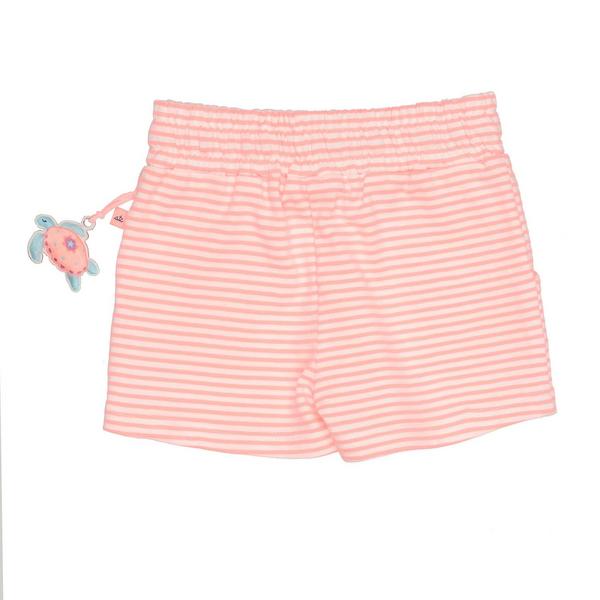 Shorts zum Verlieben! Diese zuckersüße Hose von STACCATO wird Ihre Kleine verzaubern. weicher Jerseymix Streifen-Design Blümchen-Stickerei am Saum Tunnelzug mit Glitzer und Quasten Schildkröten-Anhänger an der Seitennaht In verschiedenen Farben erhältlich.