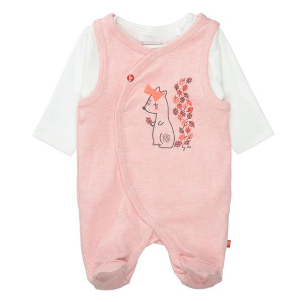 Dieses wunderbare Set von STACCATO ist ein echtes Must-Have! Das unifarbene Langarmshirt harmoniert dabei wunderbar mit dem melierten Strampler und seinem zuckersüßen Print.