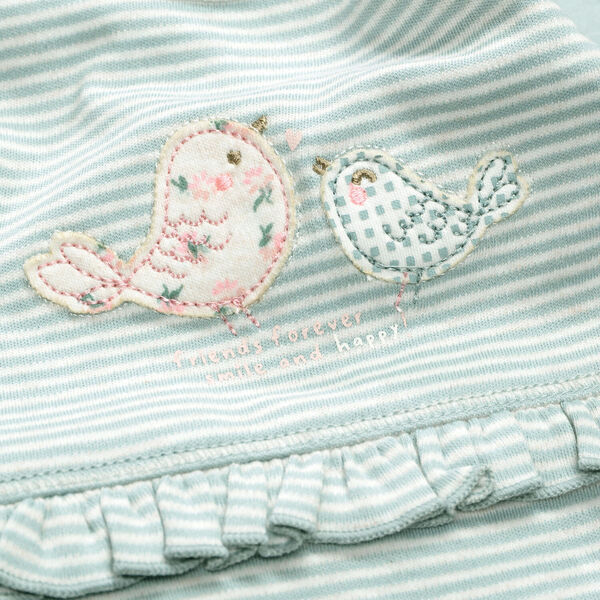 Diese zuckersüße Kombination aus gestreiftem Strampler mit niedlichen Details und einem unifarbenen Shirt wird Deine Kleine lieben!
