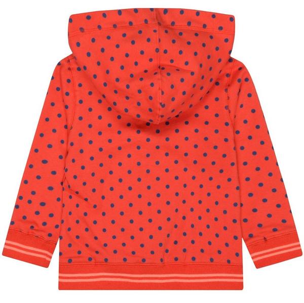 Wer Pünktchen mag, wird diese Sweatjacke lieben! Neben dem wunderbaren Pünktchen-Design präsentiert sich die Jacke zudem mit sportiven Elementen, wie einer Kapuze und einer geteilten Kängurutasche. Punkte-Design gefütterte Kapuze mit Teddy-Fell geteilte Kängurutasche kuschelige Innenseite elastische Rippbündchen mit Kontrastdetails