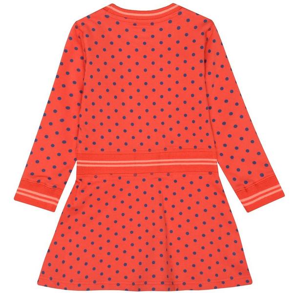 Mini-Mädels aufgepasst! Dieses verspielte Kleid präsentiert sich mit einem aufregenden Allover-Punkte-Design, einem gummierten Print und Rippbündchen mit kontrastfarbenen Details. Allover-Punkte-Print gummierter Print Rippbündchen mit Kontrast-Details knielang ausgestellter Schnitt