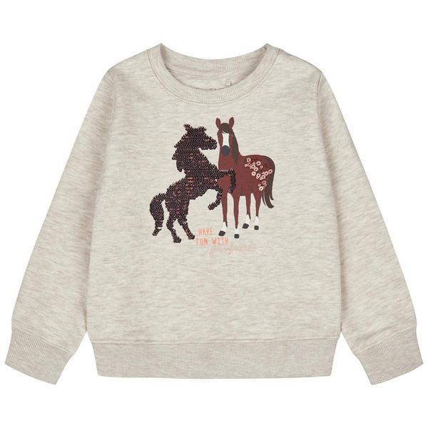 Für kleine Pferde-Mädchen ein absolutes Must-Have. Dieses niedliche Sweatshirt von STACCATO überzeugt mit einem Pferde-Print mit schimmernden Wendepailletten.