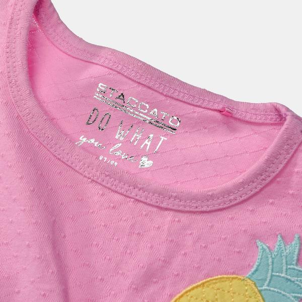 Sommerliches Must-Have! Dieses süße T-Shirt von STACCATO mit niedlichem Struktur-Muster, bunter Ananas-Applikation und Rüschen wird Ihre Tochter lieben.