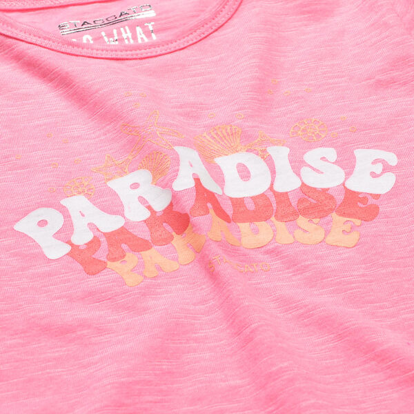 Darf in keiner Sommer-Garderobe fehlen! Dieses schöne T-Shirt von STACCATO mit buntem Wording-Print auf der Vorderseite wird Deine Kleine lieben.