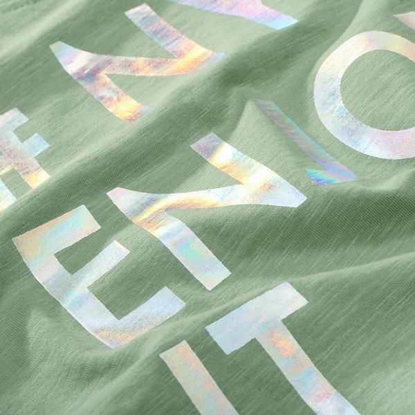 Ein echtes Must-Have für den Kleiderschrank! Mit seinem stylischen Design und dem schimmernden Wording sieht das Shirt zu Jeans und Sneakern wunderbar aus.