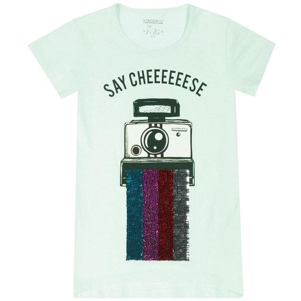Dieses T-Shirt begeistert mit seinem coolen Print und glänzenden Wendepailletten, die beim Umdrehen ihre Farbe ändern. Die reine Baumwollqualität garantiert dazu höchsten Tragekomfort. Details: Vokuhila-Schnitt, Rundhalsshirt. Dieses T-Shirt ist in verschiedenen Farben erhältlich.