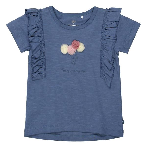 Dieses Shirt wird Ihre Tochter lieben! Mit schöner Blumen-Applikation und niedlichem Volant-Besatz wird das Shirt schnell zum neuen Lieblingsteil.