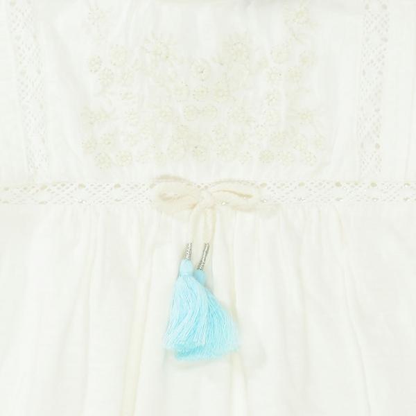 100% Baumwolle Rundhalsausschnitt mit süßer Applikation niedliche Schleife mit türkisen Quasten schließt mit Knopf auf der Rückseite