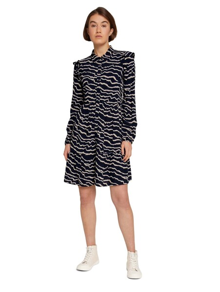 mini dress with ruffle detail - 28945/navy structu Artikel-Nr.: 1030111