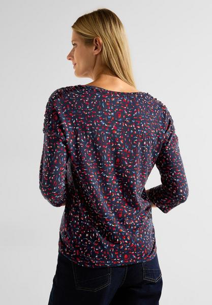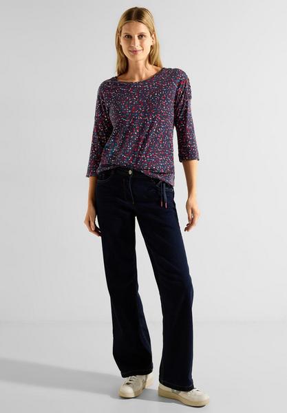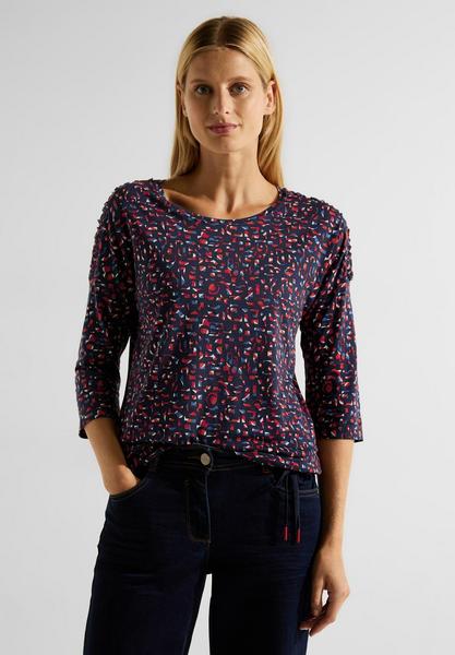 Express yourself! Das Damen T-Shirt von CECIL mit 3/4 Arm, Rundhalsausschnitt und Tunnelzug im Saum ist ein Statement-Piece für deinen individuellen Stil. Mit seinem auffälligen Print und den Raffungen verleiht es deinem Look eine kreative Note. Egal, ob du es zu Jeans oder Shorts kombinierst, dieses T-Shirt wird definitiv die Blicke auf sich ziehen. Shirt Print 3/4 Ärmel Rundhalsausschnitt Tunnelzugband im Saum Maße bei EU-Größe M ca.: Länge 67 cm, Brust 108 cm, Saumweite 112 cm Material: 50% Bio-Baumwolle, 50% Modal