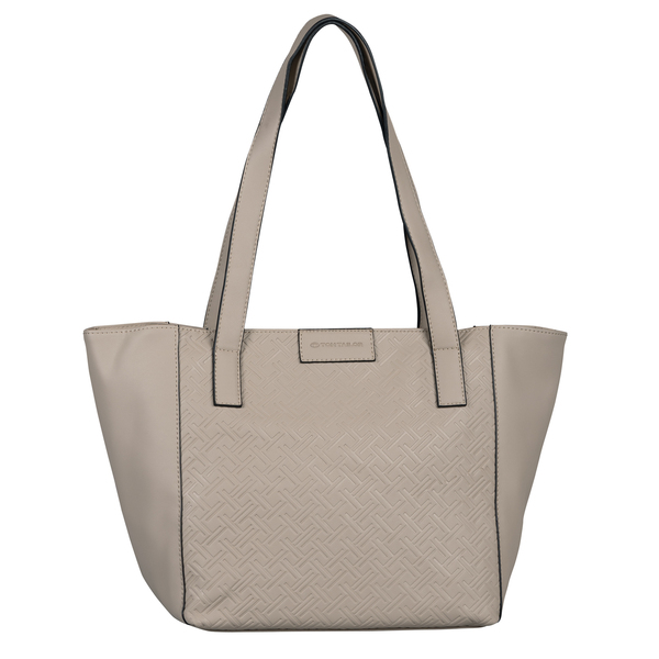 Die Allover-Logoprägung auf der Taschenvorderseite bildet einen feinen Gegensatz zum glatten Kunstleder und der klaren Farbgebung der Tom Tailor-Serie MIRENDA. Eine gerade Linienführung und kontrastierende Kantenfarbe runden das minimalistische Design ab. Großer Querformat-Shopper mit Reißverschlussöffnung, 1 Reißverschluss-Rückfach. Innen 1 Reißverschlussfach, 1 Smartphone-Fach, 1 Steckfach. 2 flache Henkel, DIN A4-tauglich.