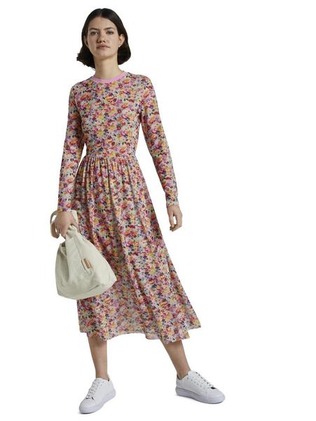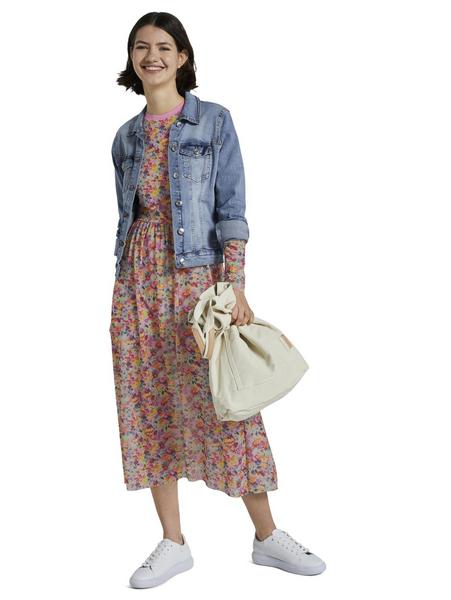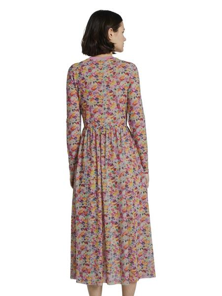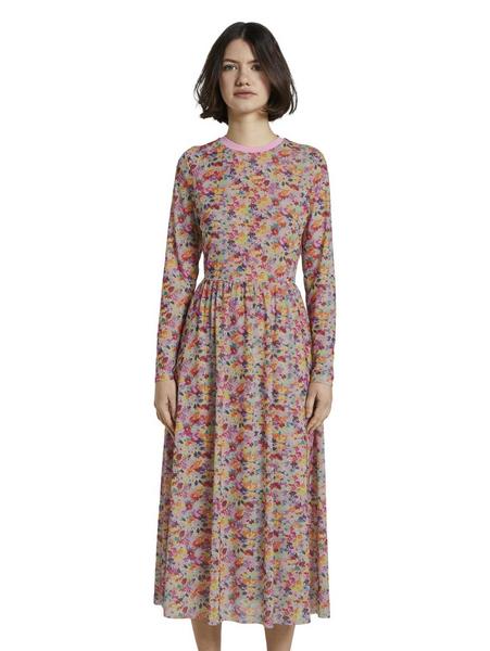 printed rib collar mesh dress - 21588/multicolor f Artikel-Nr.: 1017980