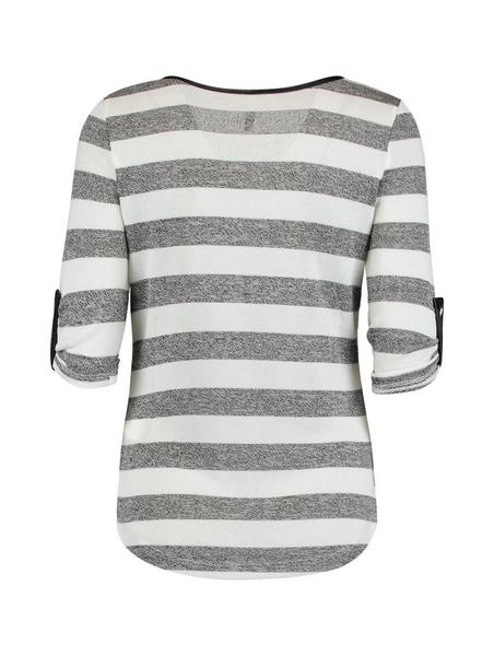 Leichter 3/4-Arm Pullover zum Krempeln, mit Knöpfen zur Befestigung. Rundhals-Ausschnitt mit Streifen-Optik.