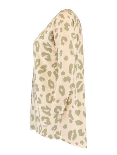 Pullover mit All-over-Print, einem überschnittenem 3/4 Arm und weichem Griff. Rundhalsausschnitt und abgerundeter Saum.