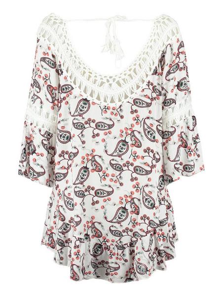 Viskose, Allover-Print, weicher, fließender Fall, mit Häkelspitze am Dekolleté, Schnürung im Nacken, V-Ausschnitt