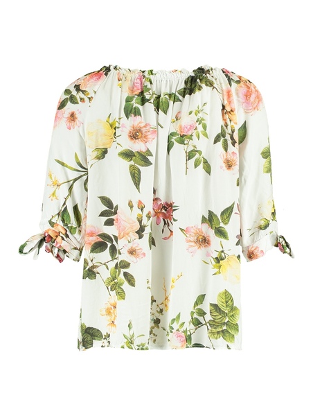 Top mit 3/4 Armen und elastischem Halsausschnitt, allover print