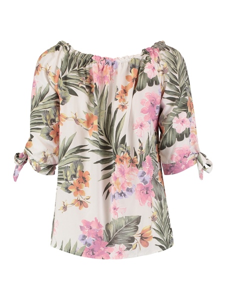 Top mit 3/4 Armen und elastischem Halsausschnitt, allover print