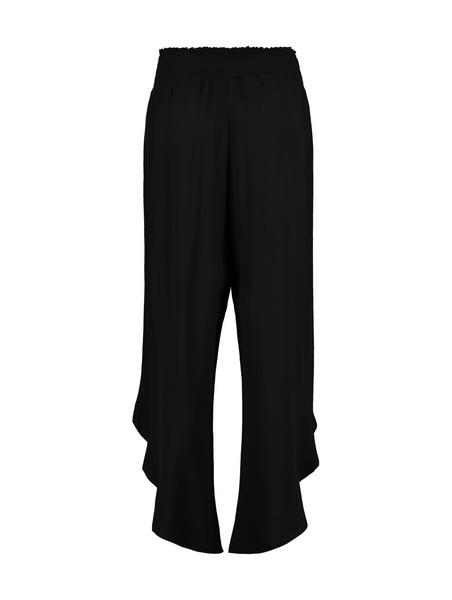 Leichte Sommerhose mit elastischem Tailenbund, fließendes Bein mit geschlitzter Vorderseite und Wellenkante. Lockerer Sitz.