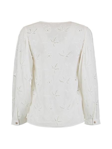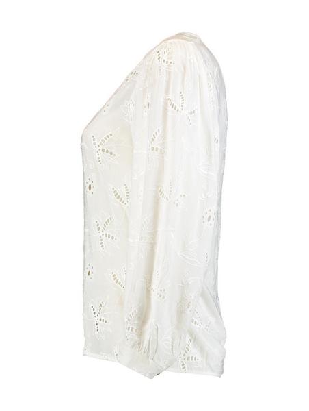 Sommerliche Bluse mit Lochmuster und Knopfleiste vorne. Ärmel mit Knopfdetail.