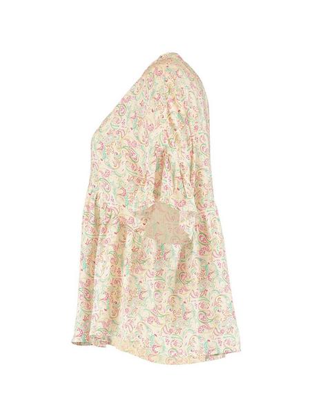 kurzarm Bluse, durchgeknöpft, V-Ausschnitt